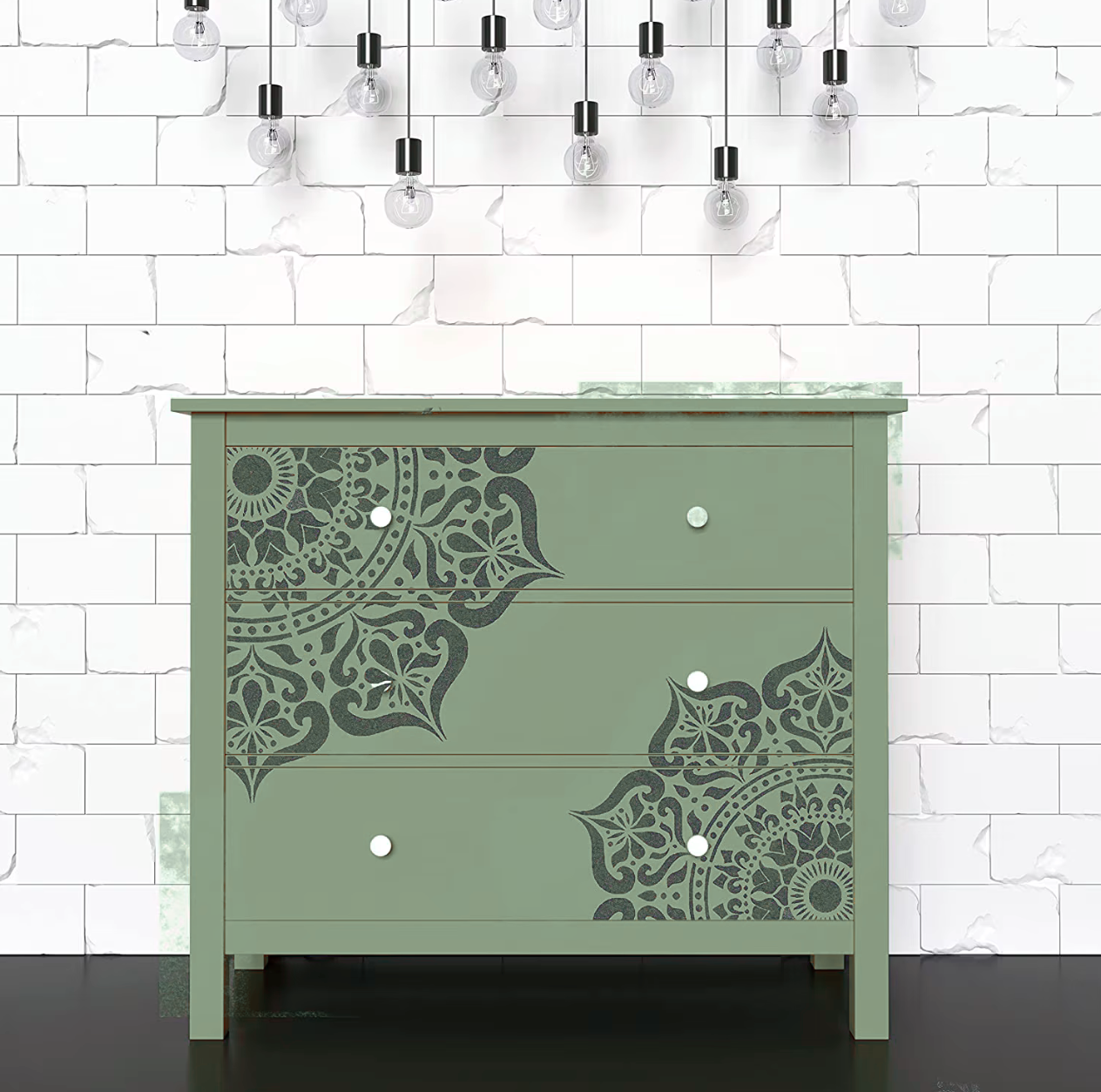 En quelques minutes, un meuble banal devient une pièce unique grâce à nos pochoirs.